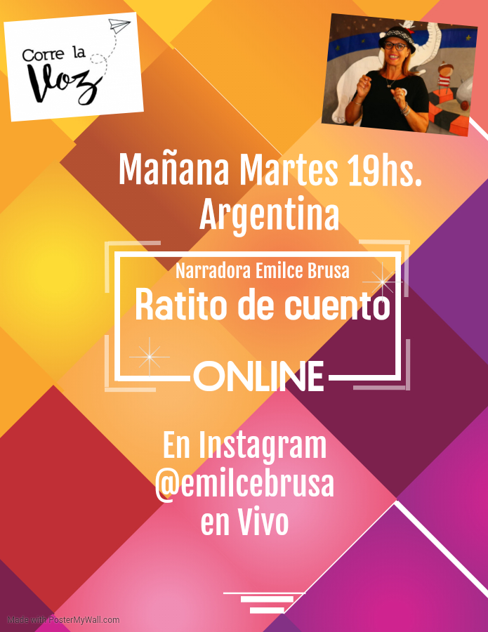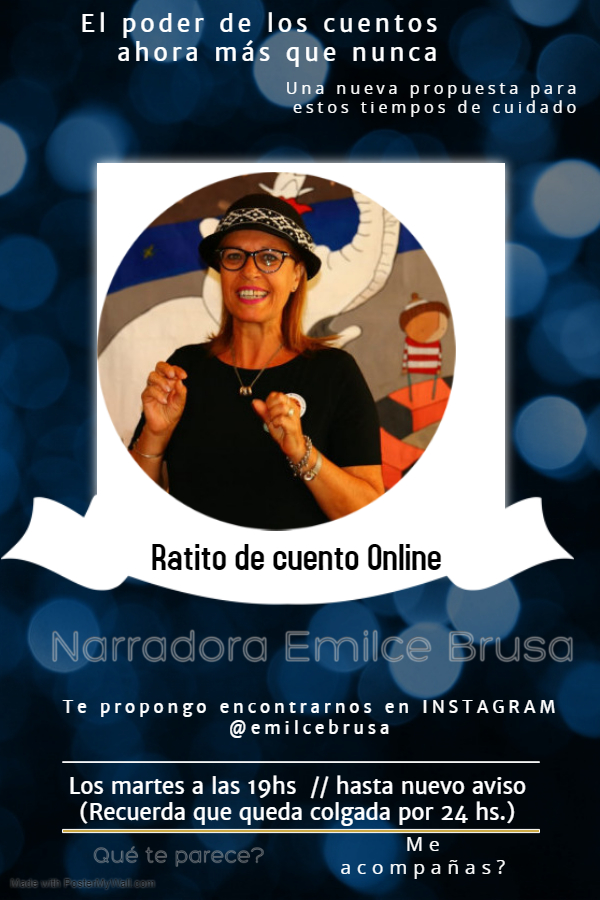 Los demás proyectos estarán saliendo después de la cuarentena, cuando pase todo lo que estamos viviendo. De todas formas siempre hay proyectos que emergen de las dificultades, por lo que se me ocurrió la semana que se anunció el aislamiento social preventivo y obligatorio (emergencia sanitaria) ofrecer todos días martes a las 19 hs. (hasta nuevo aviso) por mi cuenta de Instagram @emilcebrusa una mini función en Vivo de cuentos para niños y sus familias al que denominé: “Ratito de cuentos Online”.