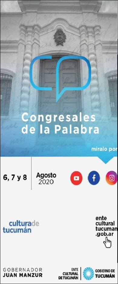 Pueden entrar a la siguente página https://enteculturaltucuman.gob.ar/congresalesdelapalabra/ para  disfrutar de manera virtual a los narradores y narradoras de España, México, Uruguay, Paraguay, Brasil, Bolivia y Perú y de las provincias Argentinas de Buenos Aires, Córdoba, La Pampa, Corrientes, Chaco, Misiones, Jujuy y Salta.