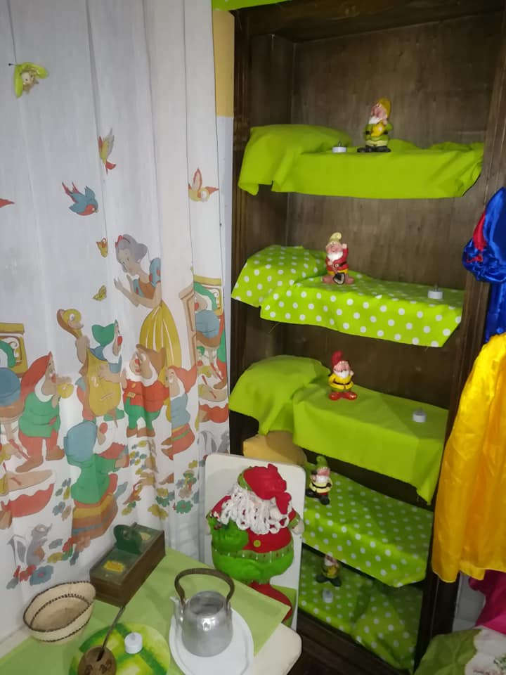 Cuando visites a Casacuento te encontrarás con hadas y reinas, con piratas, con brujas traviesas, con el Ratón Perez, con Caperucita Roja y Blancanieves. Podrás pasear por el comedor de los duendes, por la habitación de la abuela de Caperucita, por la habitación de Blancanieves acostarte en su cama al lado de las siete camitas de los enanitos. Tendrás disfraces para sentirte parte de una página de uno de esos cuentos infantiles. Podrás tirar monedas dentro de la fuente de los deseos que está en jardín o pedir algún otro en el aljibe o ir a buscar tu diente de leche que tiene guardado en su casita el Ratón Pérez. Ir a tomar un libro de una de las casitas, y leer de la Cuentateca con forma de barrio. O cuando pase la pandemia ir a presenciar funciones de cuentos en esa misma sala o participar de algún taller o encuentro de narración. Cuenta Vilma que la gente que la visitó vuelve con regalos sorpresas, por ejemplo una señora le llevó el baúl de su abuela con el ajuar completo que trajo de un país lejando. Un aviador le trajo desde la Antártida una piedra especial para Casacuento con una bella dedicaroria. Vilma tiene muchas otras sorpresas para contarles cuando la vayan a visitar.