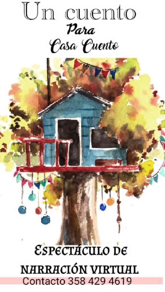 Un grupo de narradores hemos grabado un espectáculo para adultos, con el fin de ayudarla. Vos también podés colaborar comprando tu entrada que es a la gorra con una base de $150. Todo lo recaudado será para Casacuento. Más informacion y venta de entradas al contacto de la foto + 54 9 358 429 4619. La fecha de estreno es el 8 de septiembre pero quedará la venta abierta por más tiempo porque estará subido a un canal de YouTube, sólo se accederá con el link.
