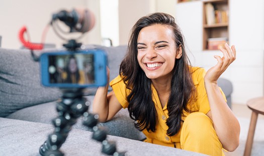 Claudia MacchiA mi ha ayudado mucho un taller donde aprendimos dónde dirigir la mirada para q el oyente sienta q se le está hablando a él. Trato de contar sentada ya q así evito moverme demasiado. Los movimientos tienen q ser lentos para q no ensucien la imagen…. en fin, cómo todo uno se va acostumbrando. Besos.