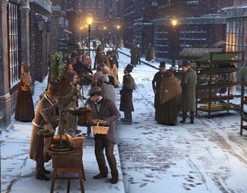Cuento de Navidad se escribió y publicó durante la época victoriana, donde predominaba una gran nostalgia por las tradiciones navideñas y costumbres como los árboles de Navidad y las tarjetas de felicitación, comenzaban a aparecer. Dickens no fue un niño feliz y esta novela es un reflejo de sus tristes y humillantes experiencias de la infancia, su simpatía por los pobres, así como relatos navideños y cuentos de hadas. El protagonista, Ebenezer Scrooge, un prestamista británico cuya personalidad pudo ser inspirado en los sentimientos que Dickens tenía por su padre, a quien amaba y odiaba al mismo tiempo. Scrooge era un señor muy adinerado cuyo único socio, Marley, había muerto. Este anciano solitario, vivía en su particular mundo, todo le desagradaba y más aún la Navidad. Su rutina diaria esa caminar por las mismas calles sin que nadie lo saludara. En vísperas de Navidad, todos compran regalos y preparan la cena navideña pero Scrooge está en su despacho como cualquier día y le exige a su escribiente Bob Cratchit que trabaje hasta tarde aunque era noche de Navidad, también le dice que después de Navidad debe llegar más temprano para reponer el día festivo. Inclusive su sobrino le invita a pasar la noche de Navidad con ellos, pero Scrooge lo desprecia.