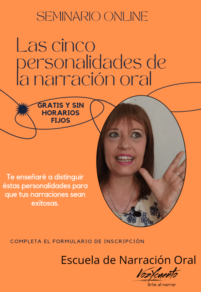 En este Seminario te describiré detalladamente las cinco personalidades de la narración oral. Te daré consejos para que tengas en cuenta a la hora de trabajar tu cuento antes de presentarte frente a un público en vivo o en forma virtual. Te mostraré algunos videos para que observes y saques tus propias conclusiones sobre el tema. Además tendrás material de apoyo para ilustrar lo tratado.