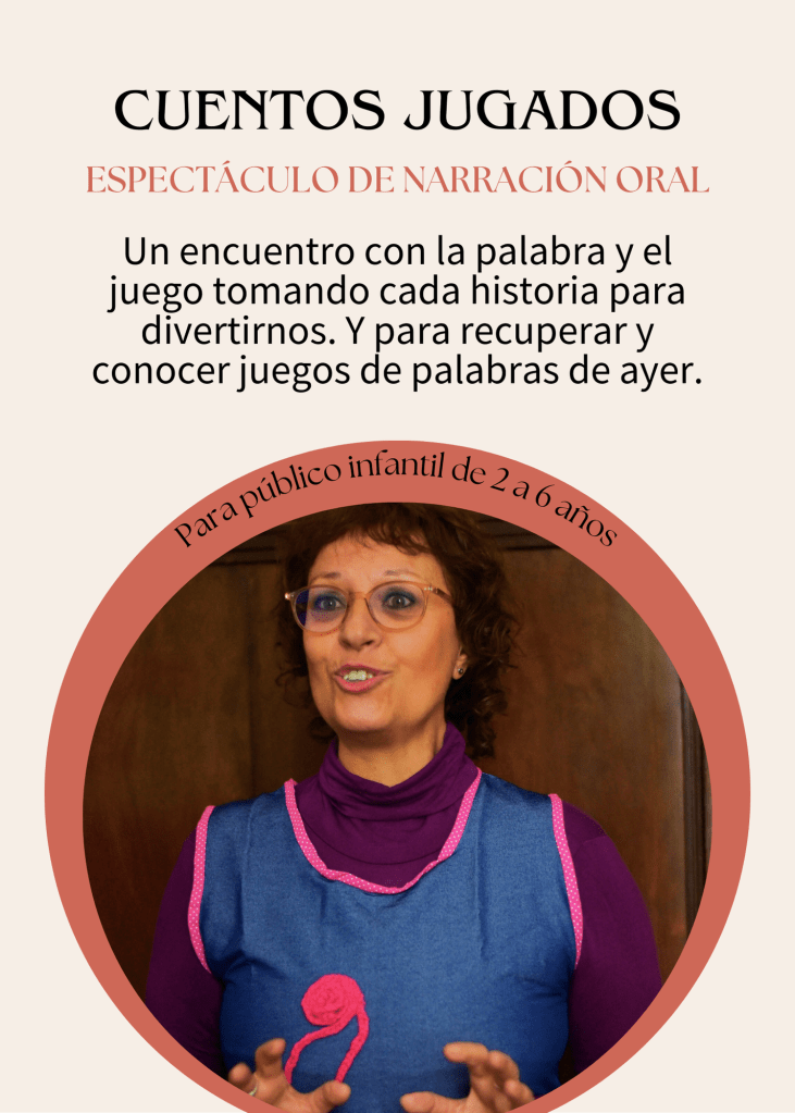 Tipo: Sesión de cuentos cerrado. Cuentos y poesías para jugar con las palabras y con cada historia.